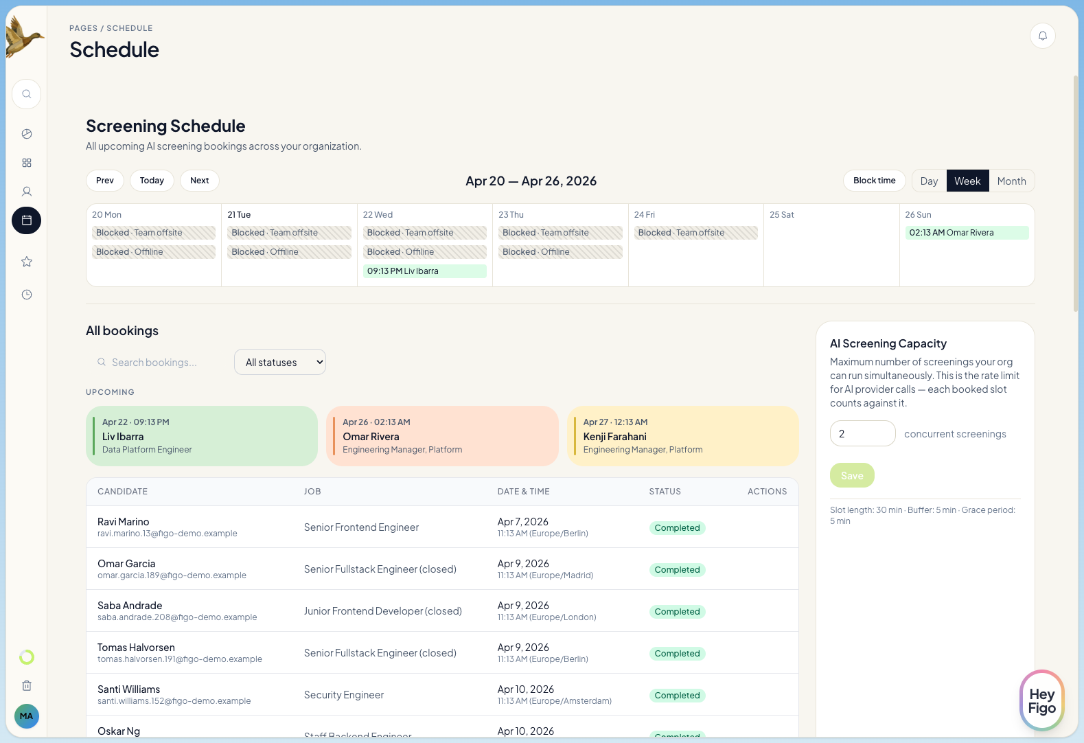 Run a single role through the full pipeline — from apply to AI voice screening — at zero cost.
